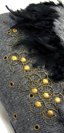 ROCKER BABE has an edgy fashion-forward look, inspired by rock music. An unusual mix of material, metallic trims, fur and feather used for embroidery creates a stylish, perfectly-tossed-on look, reminding of wild concert nights, pub life and life on a fast lane.
