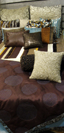 THE ICE RIVER - dances in hues of Tundra Blue, Silvery Cool Grey, flows through moss-brown banks where the snow hug crystal bushes that glow in the golden sunlight. Sunanda Halder has captured these scenes and transformed them to living pleasure in her unusual lifestyle and home textile collection.
